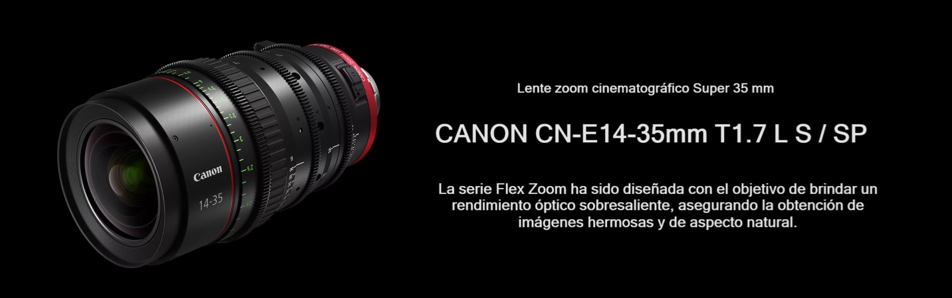 Con una transmisión de luz uniforme de T1.7 en todas las longitudes focales del zoom, la serie Flex Zoom ofrece una amplia longitud focal desde el gran angular del objetivo CN-E14-35mm T1.7 hasta la longitud focal media del objetivo CN-E31.5-95mm T1.7. Estos objetivos son el complemento ideal para cubrir una amplia variedad de situaciones de grabación.