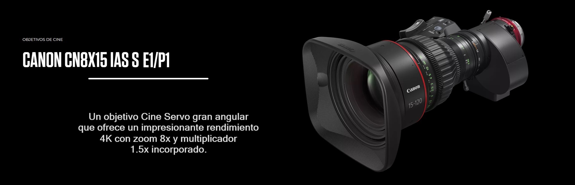 El CN8x15 IAS S E1/P1 es el objetivo Cine Servo más amplio de Canon, ideal para eventos en directo y producciones creativas. Además, con el teleconvertidor 1.5x integrado, proporciona un mayor alcance a las cámaras Super35mm y una cobertura en todo el encuadre para las producciones de gran formato a las cámaras Full Frame.