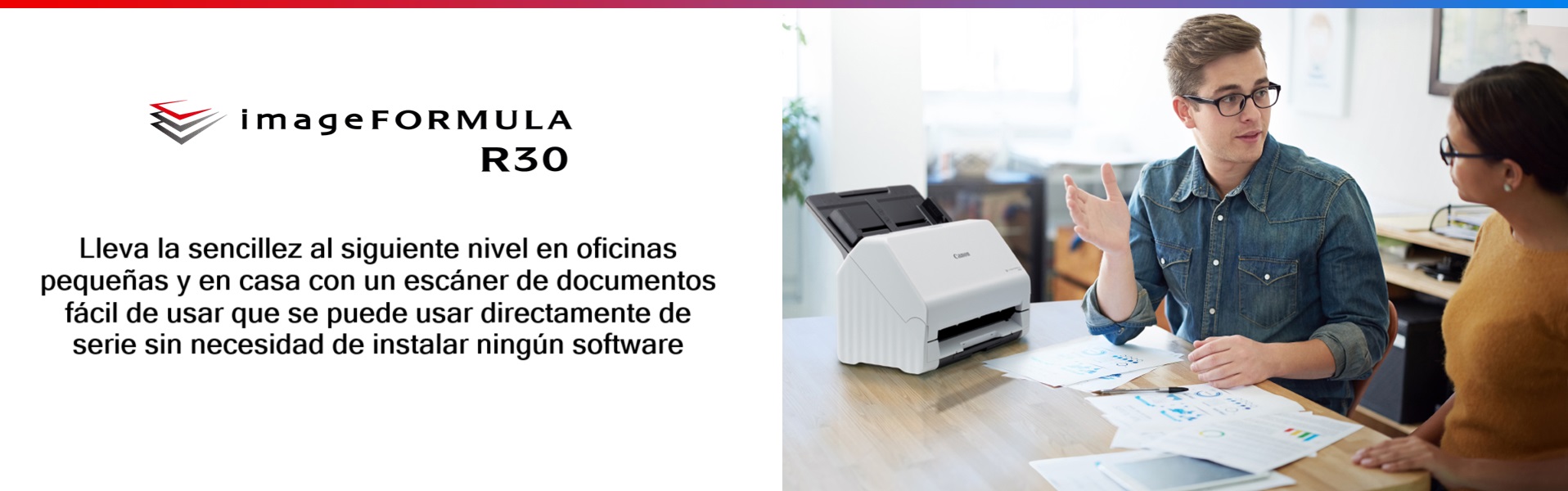 Lleva la sencillez al siguiente nivel en oficinas pequeñas o en casa con un escáner de documentos fácil de usar. El escáner R30 es uno de los escáneres con usabilidad más intuitiva. Ahorra tiempo y mejora tu productividad con el software Capture OnTouch Lite ya integrado en el equipo. Solo conecta y digitaliza tus documentos para mantenerlos seguros y organizados.
