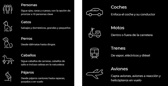(RAW, HEIF, JPEG) individuales antes de pulsar el obturador con AF, AE y seguimiento completos.