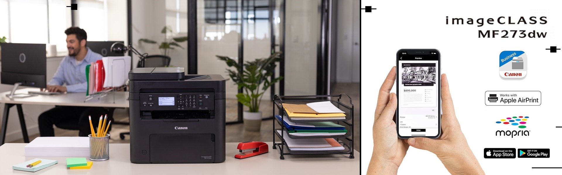 El multifuncional láser monocromático MF273dw está diseñado para entornos de oficina pequeños en los que se necesita capacidad multifunción en blanco y negro, y en los que la productividad, la facilidad de uso y la gran capacidad de volumen de páginas son prioritarias.