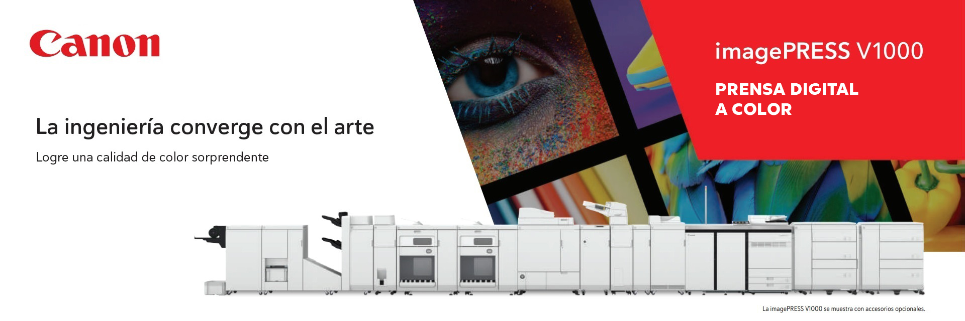 Canon aprovecha la calidad, productividad y versatilidad comprobada de la marca imagePRESS y la eleva al siguiente nivel. Con nuevas tecnologías exclusivas y esenciales, la imagePRESS V1000 está diseñada para permitirle materializar su visión de forma más sencilla y eficaz que nunca.