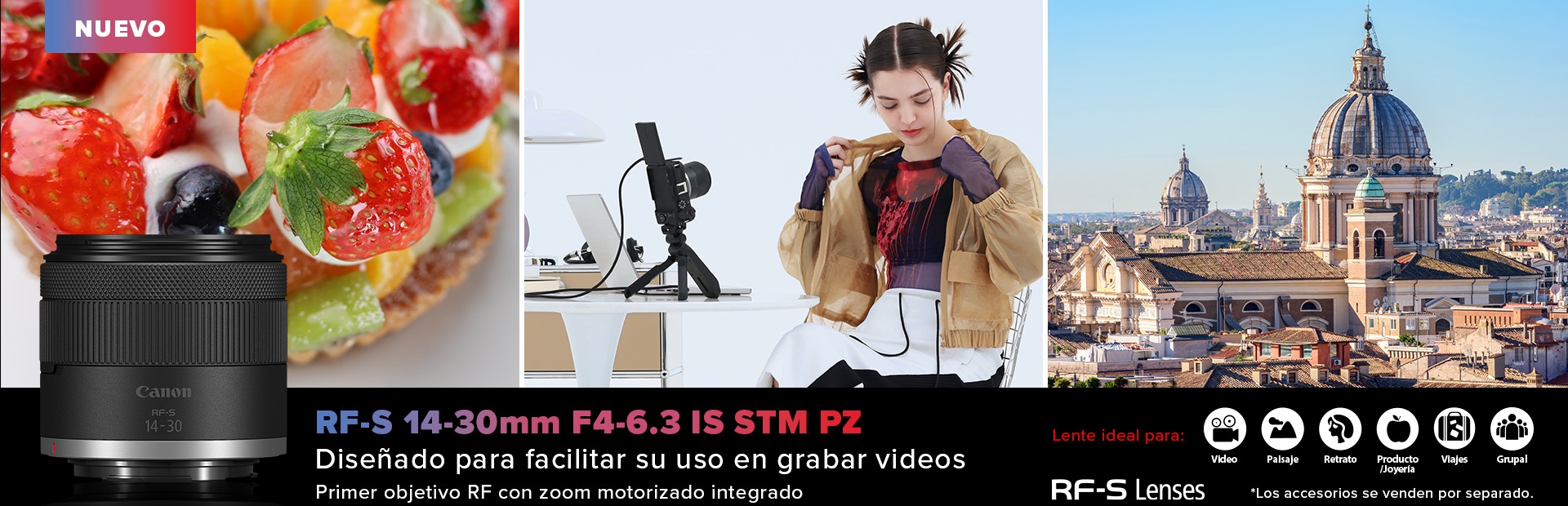 RF 14-30mm F4-6.3 IS STM PZ           RF 14-30mm F4-6.3 IS STM PZ*Los accesorios se venden por separado.