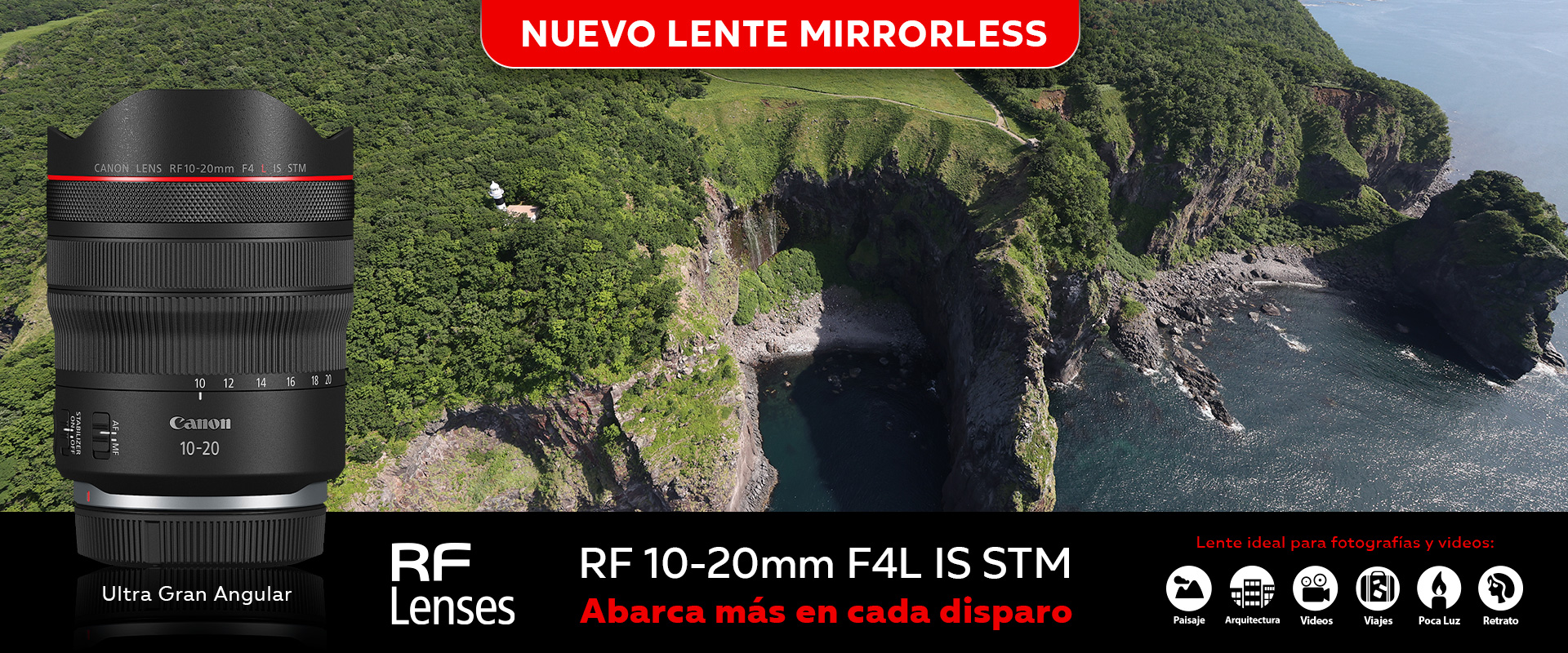 El Objetivo RF 10-20mm F4L IS STM que Canon trae para ti. Es un objetivo zoom ultra angular de la serie F4 que cubre un campo de 10mm adicional este objetivo cuenta con un sistema de estabilización de imagen en su interior. Este objetivo ofrece un diseño ligero y compacto el cual hace más fácil la movilidad. Te ofrecerá una nueva experiencia de disparo ultra angular ideal para fotógrafos de arquitectura y paisaje.