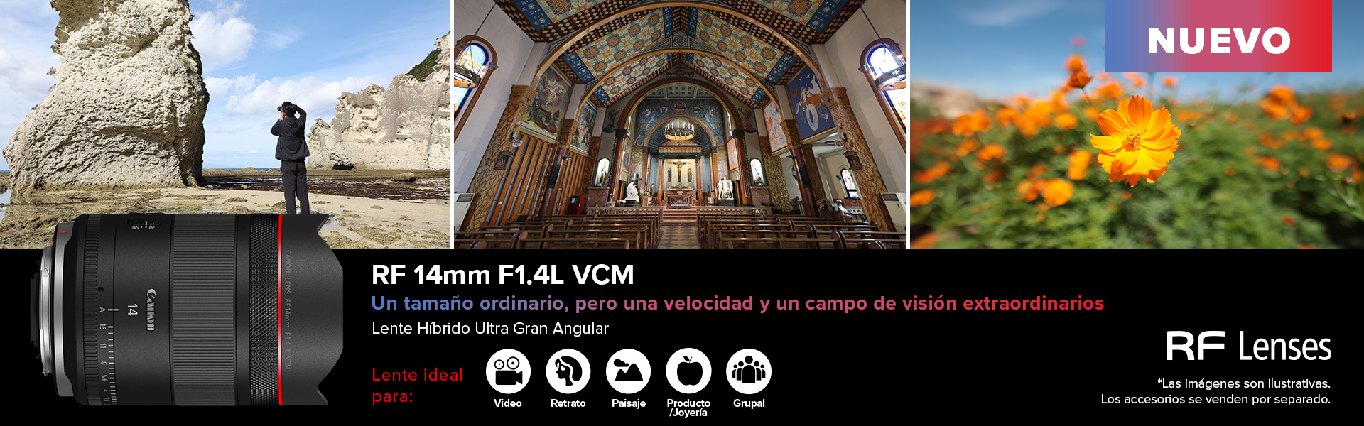 Conoce el objetivo ultra gran angular de 14 mm más brillante que Canon haya fabricado jamás, diseñado tanto para creadores de fotos como de vídeos. Con una apertura ultrarrápida de f/1.4, este innovador objetivo ofrece un rendimiento excepcional con poca luz y una impresionante profundidad de campo reducida, lo que lo hace perfecto para fotografías espectaculares y visuales cinematográficas.