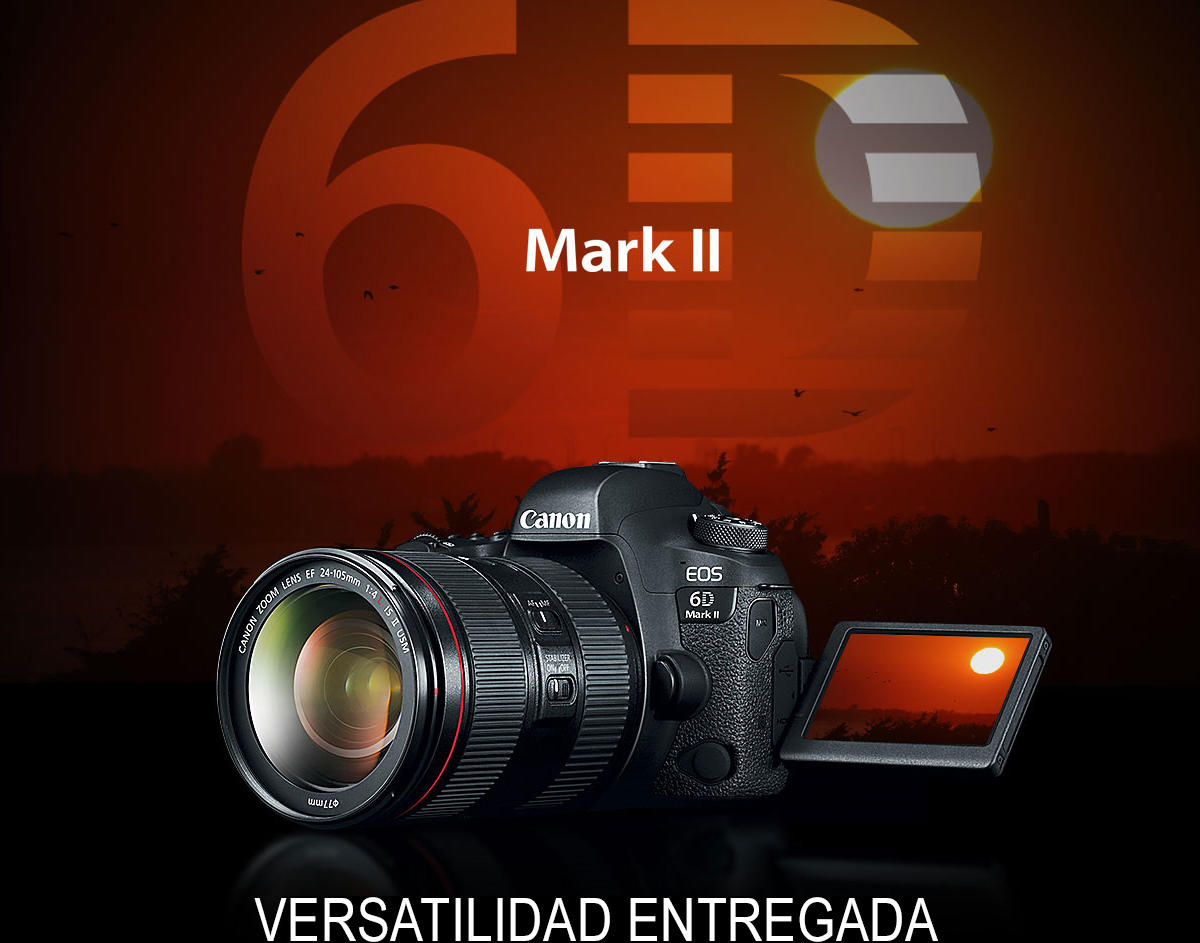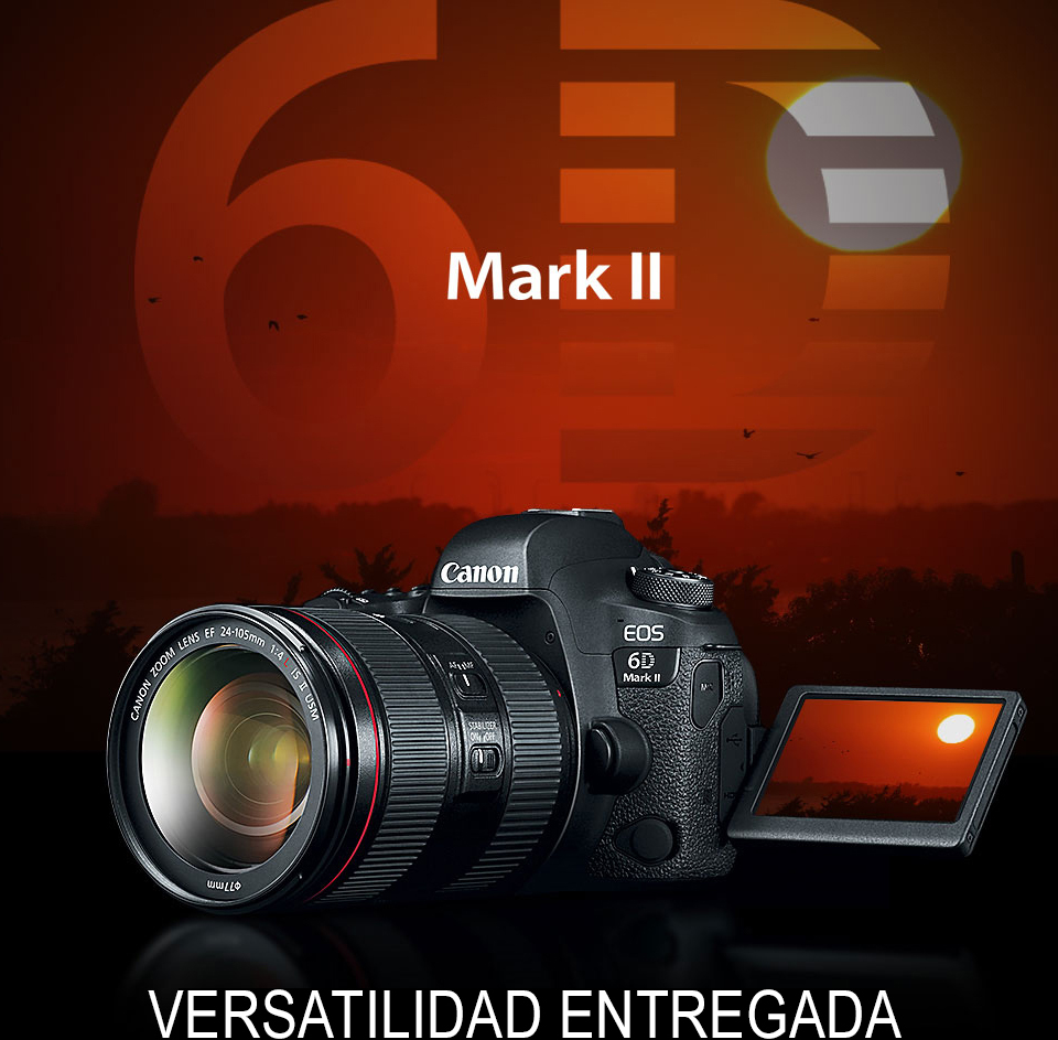 La cámara EOS 6D Mark II de Canon ofrece la característica de cuadro completo en un modelo DSLR compacto con funciones completas. Su sensor CMOS de cuadro completo y 26.2 megapíxeles y su poderoso procesador de imágenes DIGIC 7 ayudan a lograr resultados increíbles, incluso en configuraciones ISO expandidas. La cámara EOS 6D Mark II EOS 6D Mark II presenta un visor óptico impresionante con 45 puntos de AF tipo cruz*, ofrece el AF del CMOS de Píxeles Duales rápido y preciso, y cuenta con una pantalla táctil LCD de ángulo variable para una operación flexible en el Modo de Control en Vivo (Live View). La EOS 6D Mark II ofrece a los creadores de contenido creativo una cámara que es tan divertida como poderosa. Además, esta cámara cuenta con la resolución necesaria para crear retratos detallados, la velocidad requerida para capturar la acción y la versatilidad deseada para plasmar paisajes con la composición perfecta y videos de 60p en Alta Definición Real (Full HD), en una gran cantidad de entornos y condiciones de iluminación.